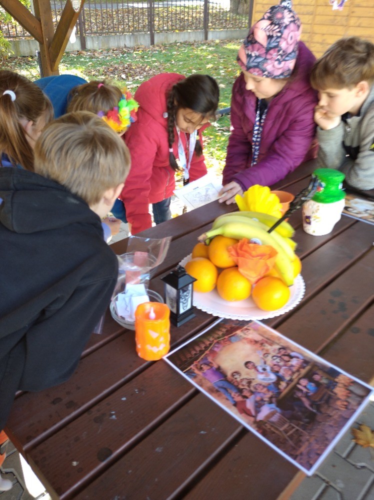 Díky této pohádce se naše družina proměnila v barevný svět plný květin, mexických lebek či tradičních oltářů. Nakonec každé z dětí nakreslilo obrázek své rodiny a dostalo požehnání babičky Coco.