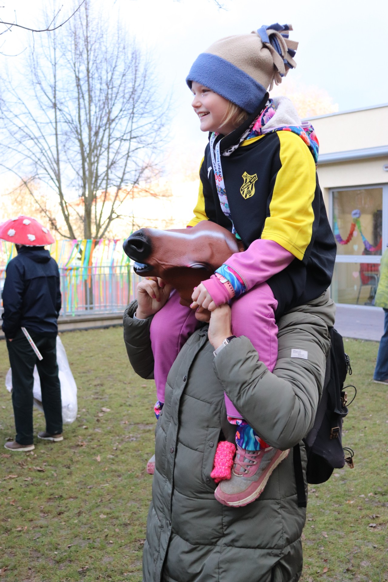 Ulice okolo naší školy se včera odpoledne rozzářily pestrobarevnými kostýmy, rozezněly hravými říkadly a veselými písničkami. Letošního masopustu se zúčastnilo více než dvě stě dětí a rodičů. Průvod jsme zakončili ve školním atriu, kde byla připravená masopustní veselice tak, jak má být – s tancem, masopustními soutěžemi a dobrotami. Na fotkách se podívejte, jak jsme si to užili. A příští rok pojďte s námi.