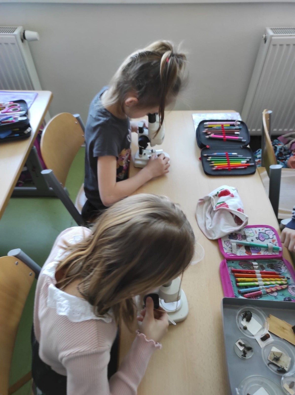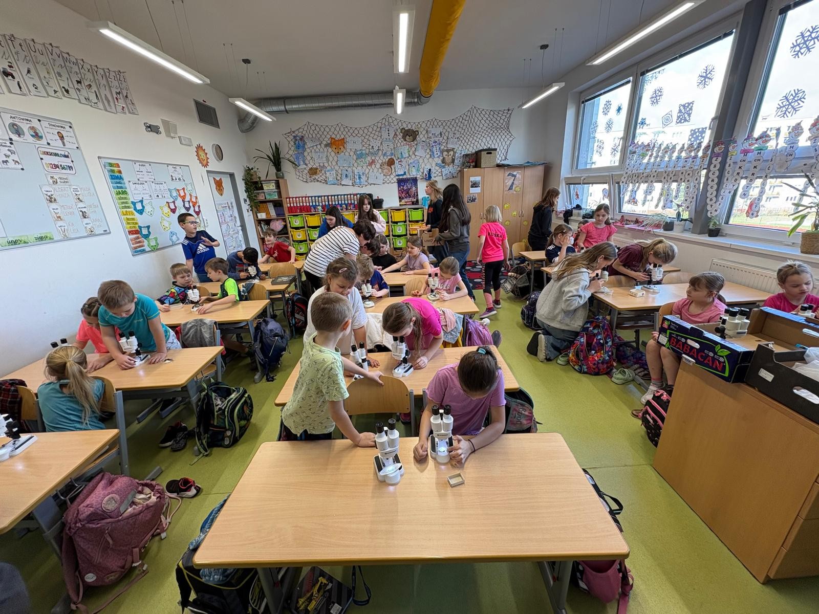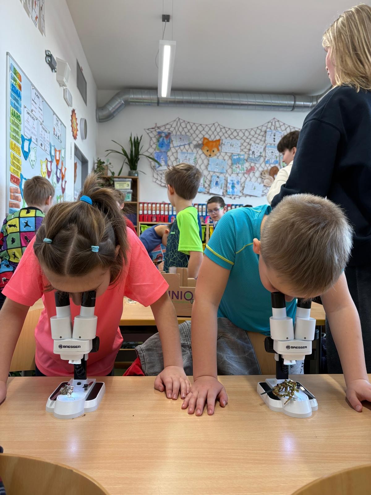 Během února k nám do druhých tříd zavítali žáci 9.B, aby nám ukázali, jak fungují binokulární mikroskopy. Přinesli s sebou nejen přístroje, ale i spoustu zajímavého hmyzu k pozorování.